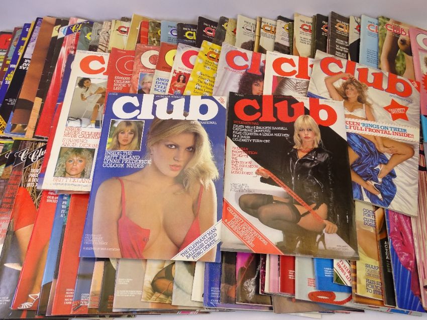 CLUB/CLUB INTERNATIONAL GENTLEMAN'S GLAMOUR MAGAZINES 1970 - 1980, 98 issues including Volumes 3 - 7 of Club International appearing as complete runs with Volume 1, Issue 1 present and four pull-out posters from later issues
