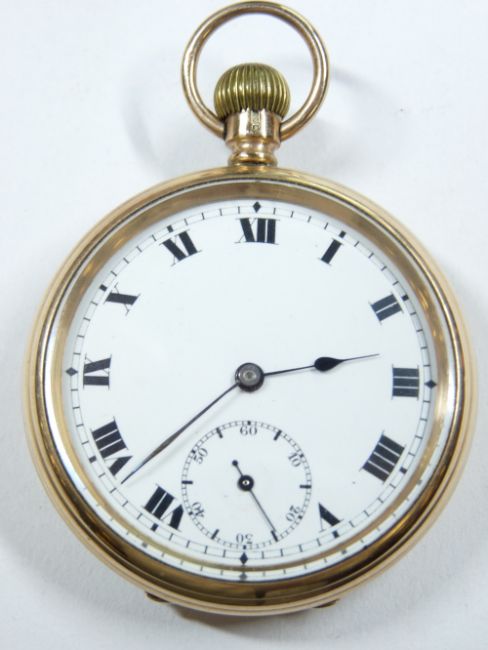 A 9CT GOLD GENT'S POCKET WATCH, Chester 1924, white dial, Roman numerals, sweep seconds dial, 98grms gross