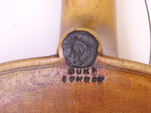 VIOLIN - Vintage marked 'Duke London', associated components and unmarked bows