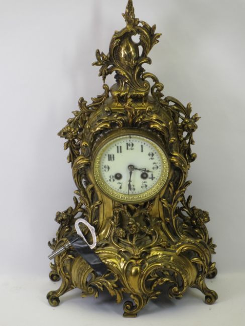 FRENCH GILT BRASS ROCOCO MANTEL CLOCK with Japy Freres type movement stamped 'F.C'