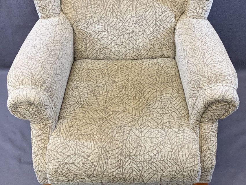 WINGBACK ARMCHAIR in textured leaf pattern upholstery, 110cms H, 80cms W, 85cms D overall