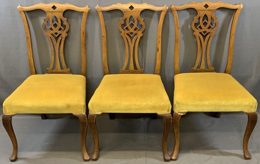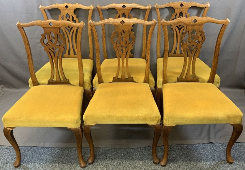 CHIPPENDALE STYLE CHAIRS (6) with shaped tops and centre shaped splats