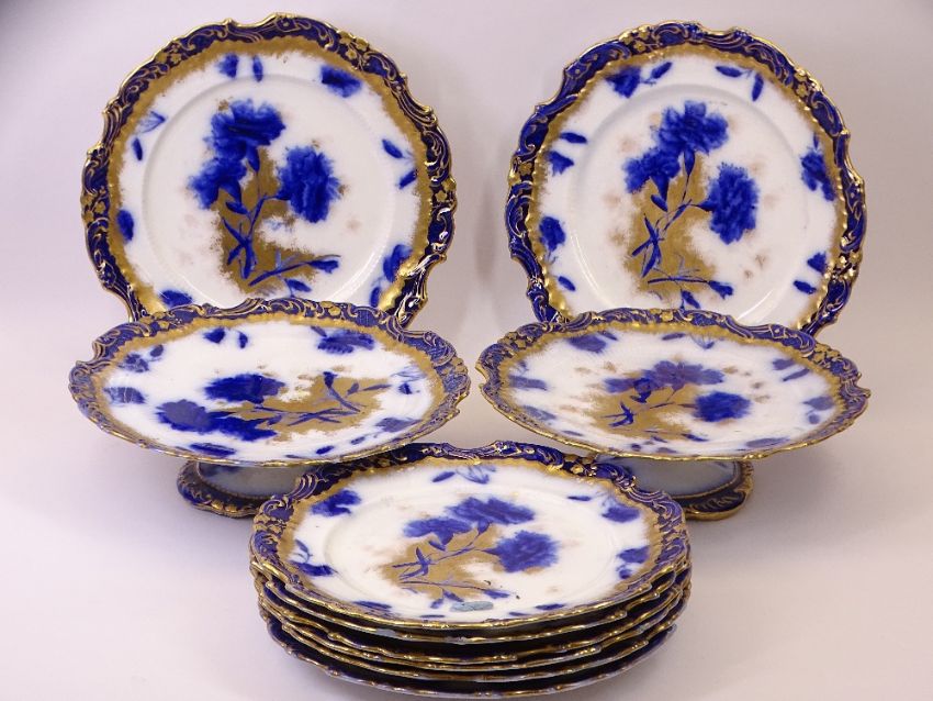 W A A ADDERLEY STAFFORDSHIRE CARNATION DESSERT WARE, 10 pieces