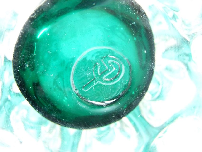 LISKEARD & OTHER ART FORM GLASSWARE, 5 pieces to include a floral cut Cranberry vase, 22cms H, a further wheel cut example in shaded green, 24cms H, the Liskeard with heavy gauge knobbly detail and raised factory mark to the base ETC