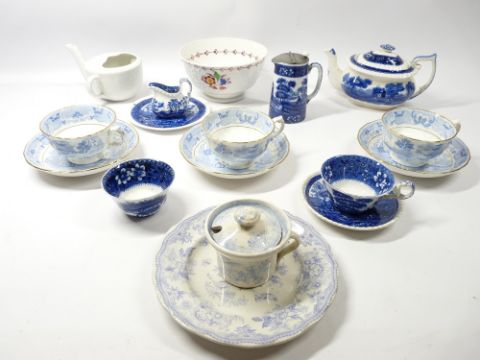 COPELAND SPODE & OTHER BLUE & WHITE TABLEWARE with a vintage feeder cup and an early lustre decorated sugar basin