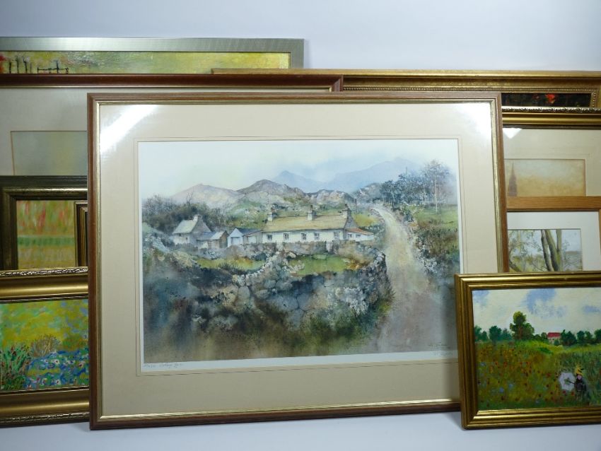 FRAMED OIL PAINTINGS, Limited Edition prints including a G V GADD, Cottage Lane 296/850