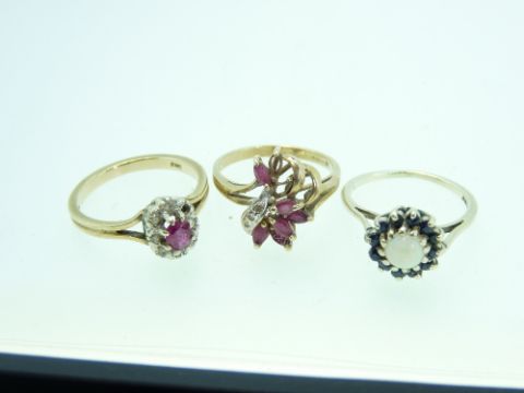 THREE 9CT GOLD DRESS RINGS, two being size M, one mid O-P, 8.2grms gross