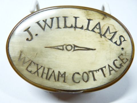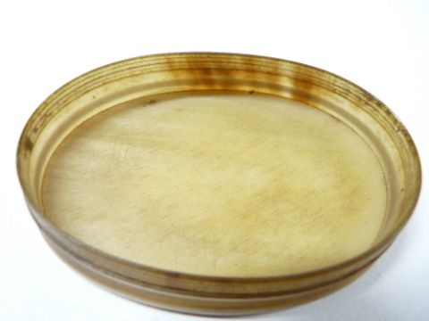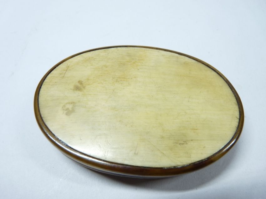 HORN SNUFF BOX inscribed 'J Williams Wexham Cottage', 8.5cms across