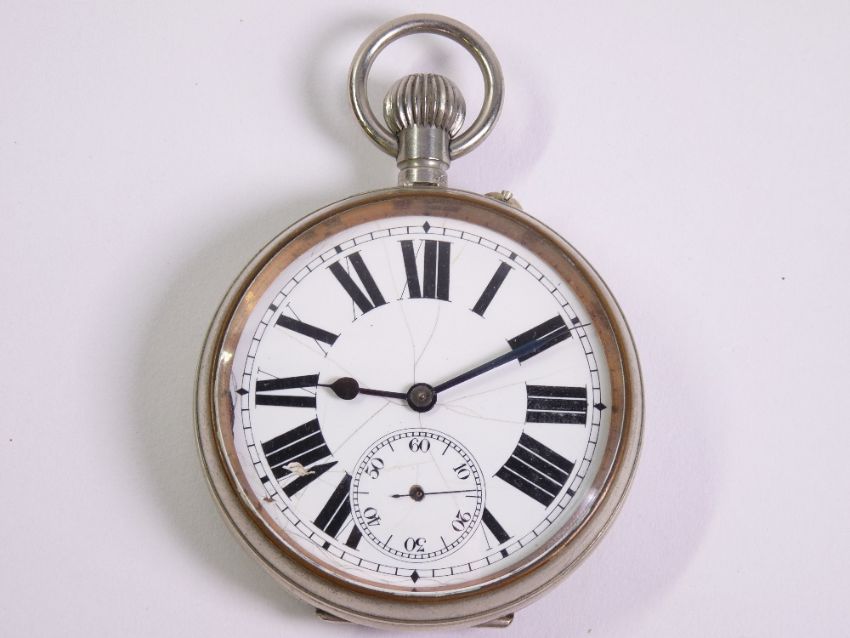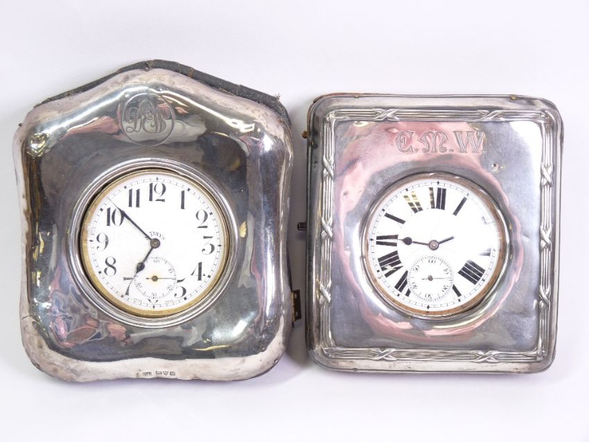 SILVER FRONTED WATCH CASES (2) containing Goliath type nickel pocket watches, Birmingham 1907 and Chester 1920, Makers Henry Mathews and Charles Cooke respectively