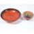 MONART GLASSWARE SHALLOW BOWL and one other, possibly the same maker, the larger in mottled oranges and reds containing gold fleck to the rim, 22.5cms diameter, the other in tonal greens to red with a moss inclusion type effect, 11cms diameter