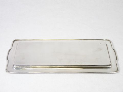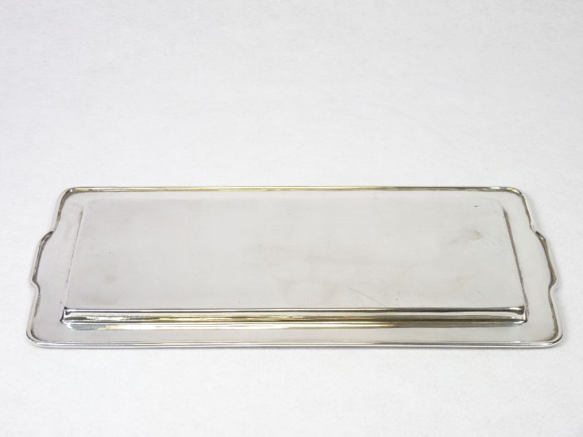 A PLAIN OBLONG SILVER DRINKS TRAY - Birmingham 1935, 14.5ozs, 33cms L, 16cms W