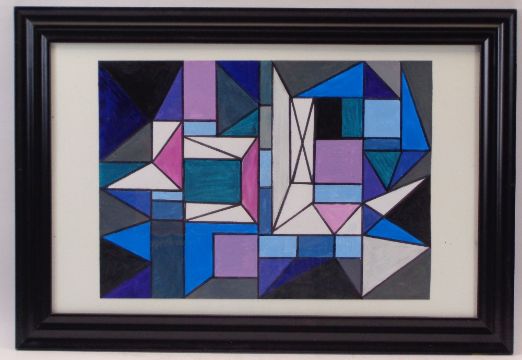 SHAN ECCLES (Emerging Deganwy Artist) - Geometric Abstract, pinks, greens, blues and blacks, 29 x 41cms