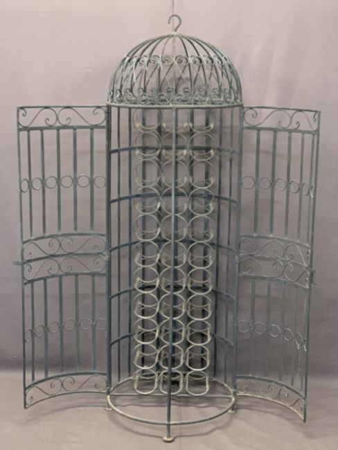 STYLISH DOME TOP WROUGHT IRON WINE RACK WITH DOUBLE DOORS, 147cms overall H, 48cms approx diameter