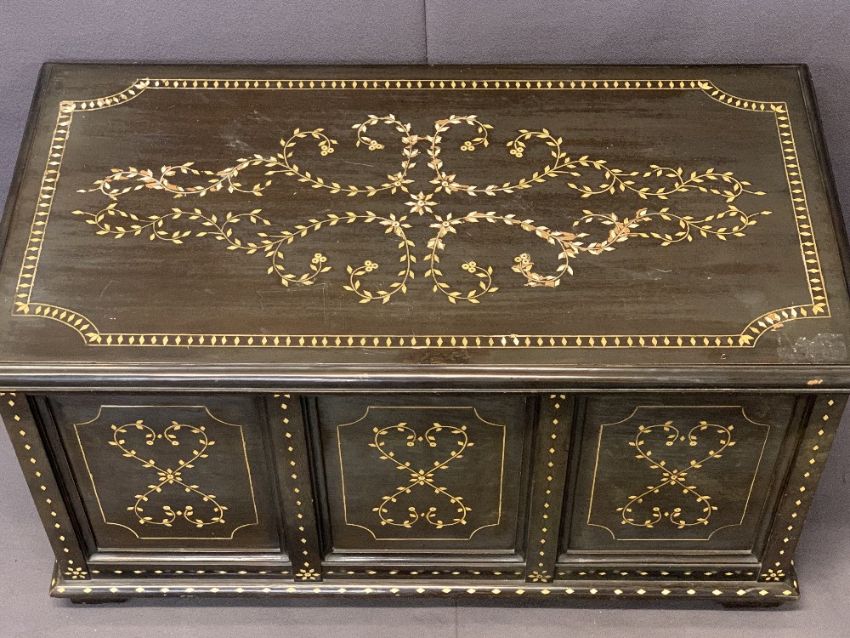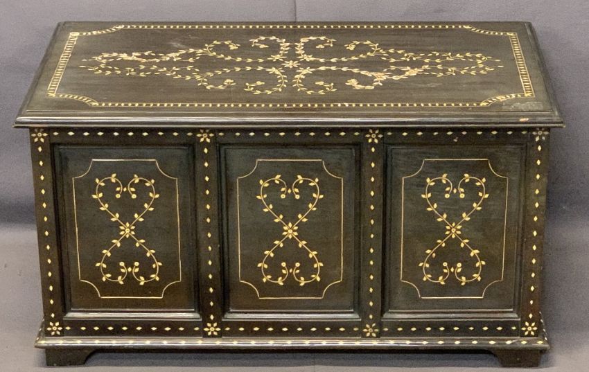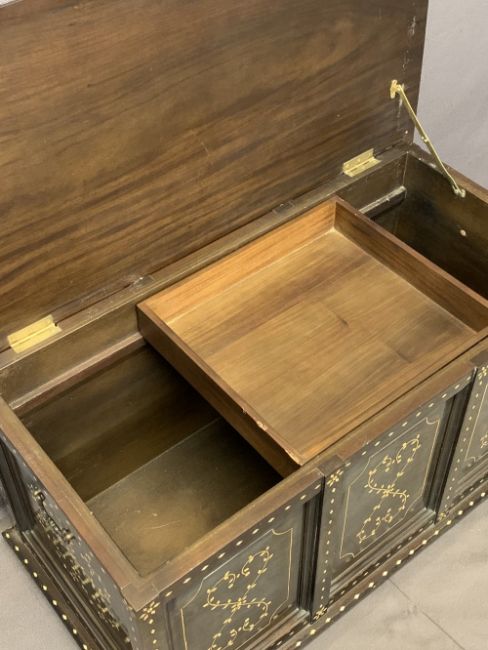 REPRODUCTION EASTERN INLAID STYLE BLANKET CHEST - interior lift-out slider, 46cms H, 85.5cms W, 44.5cms D