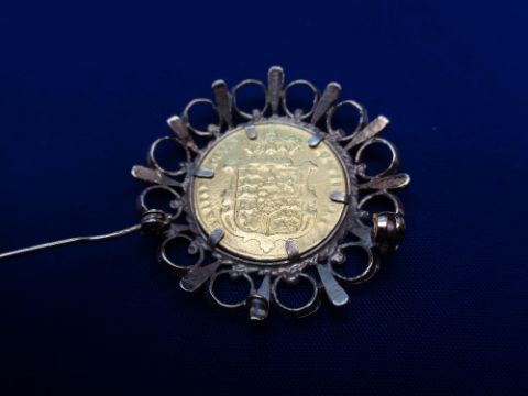 GEORGE IV BARE HEAD GOLD SOVEREIGN - in 9ct gold brooch mount, crowned shield, indistinctly dated, 13.2grms gross, coin 22mm, 39mm overall diameter