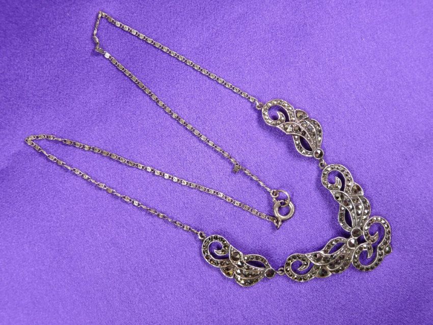 MARCASITE BROOCHES, NECKLACE, A PARCEL