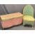 LLOYD LOOM STYLE BEDROOM FURNITURE ITEMS (2) - open chair with upholstered seat in green and gilt and a serpentine front blanket chest in pink with upholstered top, various measurements