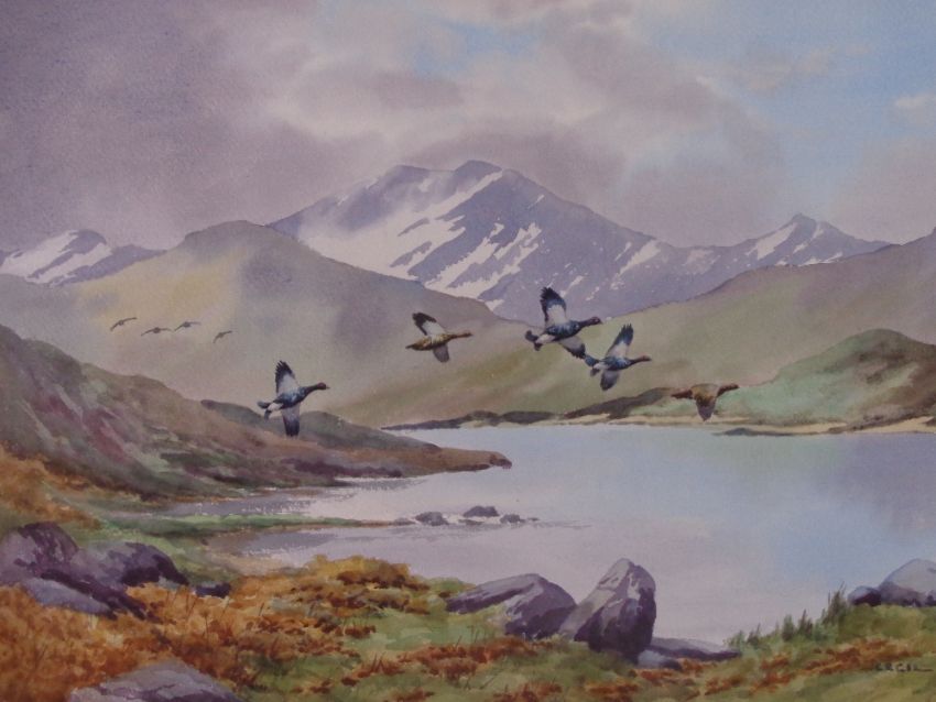 CECIL HODGKINSON watercolour - title verso 'Black Grouse', Llyn Mymbyr, Capel Curig, signed, 33 x 51cms