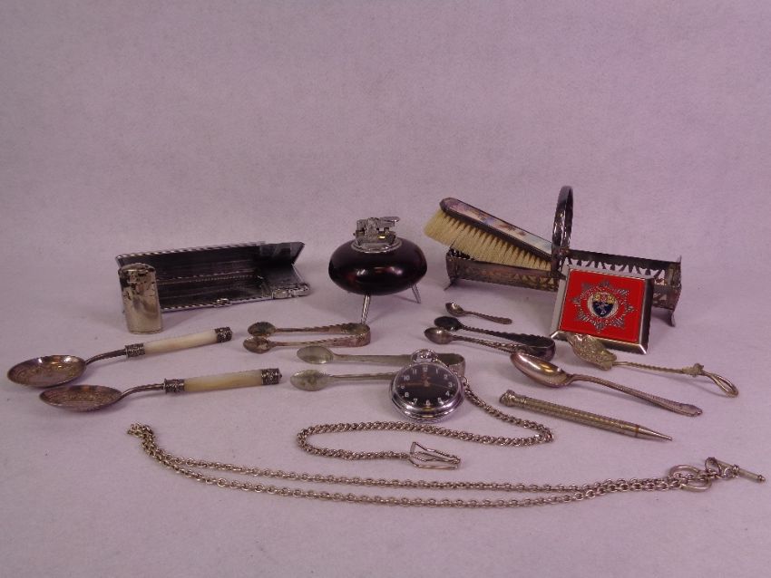 VINTAGE TABLE LIGHTER, pocket watch, other white metalware, ETC