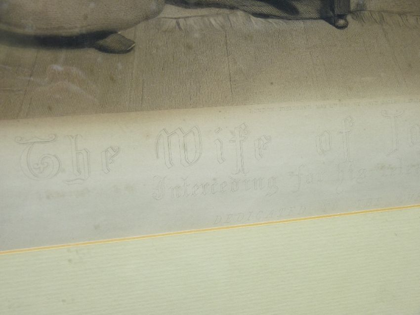 AFTER G DUVALL mid19th century engraving - titled 'The Wife of John Bunyan', 56 x 72cms in a large gilt frame, 97 x 113cms overall, ARTHUR J ELSLEY proof stamped black and white print - titled 'One Two Three Go', 67 x 48cms and an Edwardian photographic family print, 30 x 26cms, the latter two both oak framed