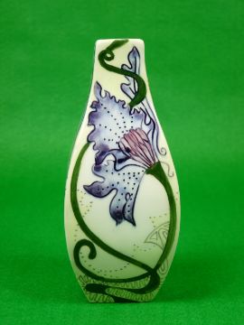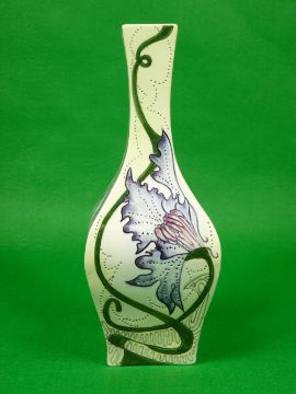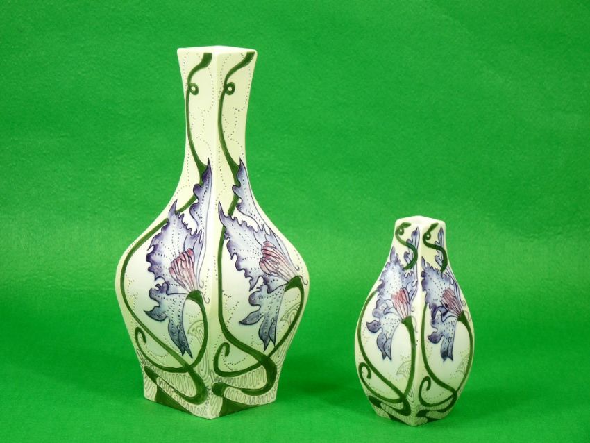 BLACK RYDEN VASES (2) 'Echoes' by Emma Bossons - both cream ground and square based by with swept form bodies, 24 and 13cm heights, impressed and painted factory marks to the bases, dated '02, in original boxes