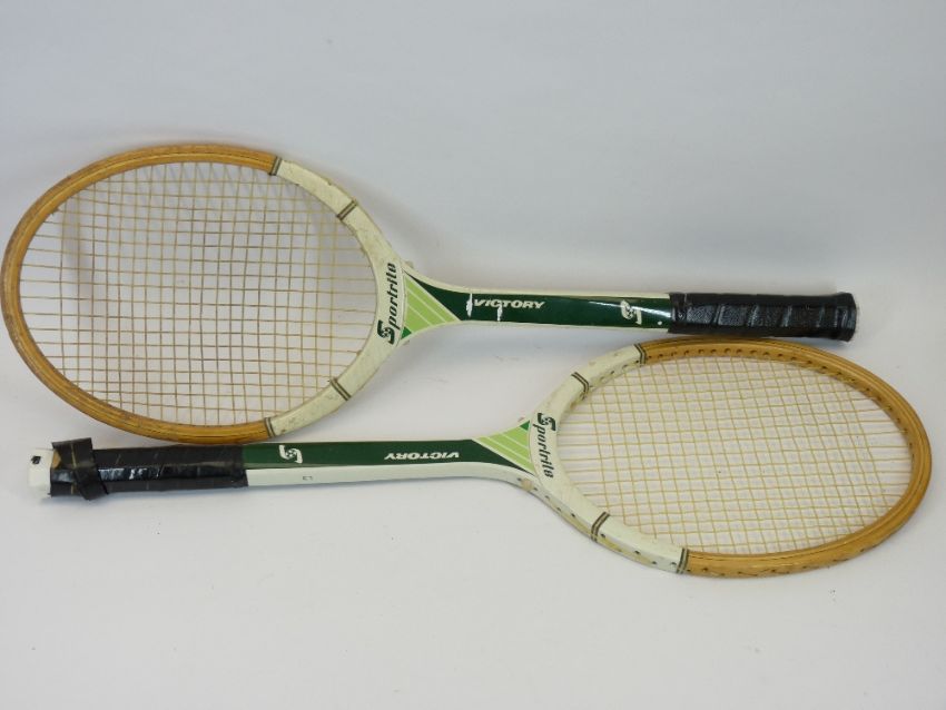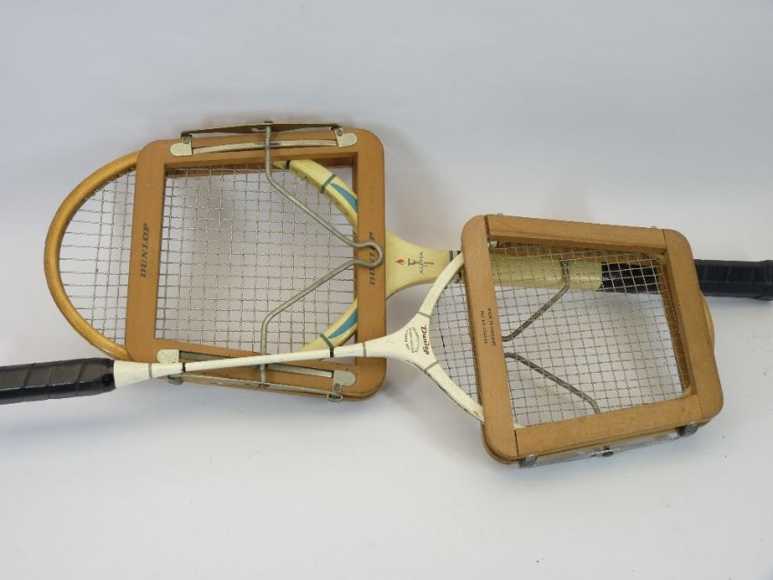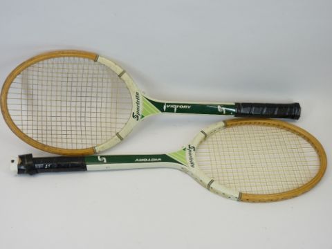 VINTAGE SPORTING ITEMS including Spencer's Foil marked 'Leon Paul' also Dunlop and other tennis rackets, baseball bat, hockey stick, balls, ETC