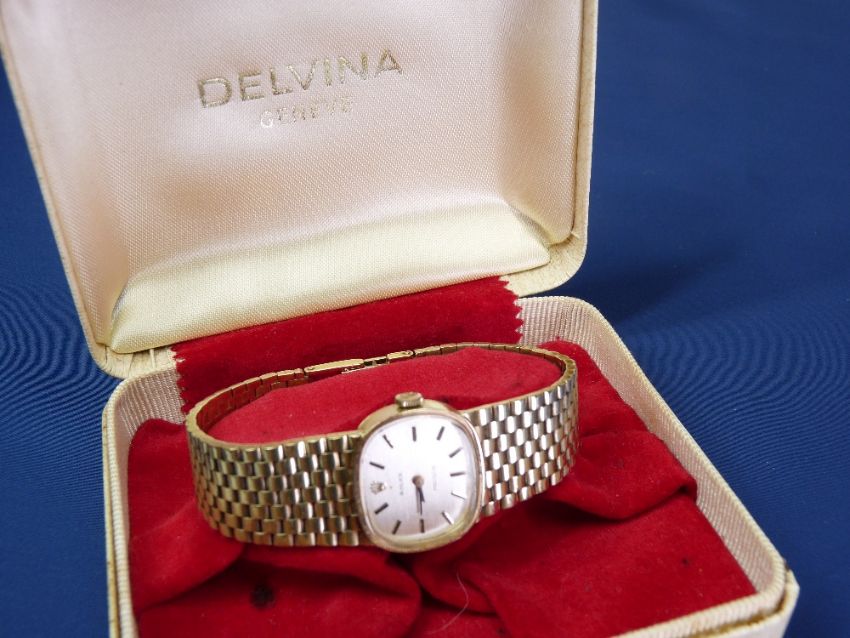 A LADY'S PRECISION ROLEX 18CT GOLD WRISTWATCH - with seven row tapered gold Rolex strap, 48grms gross