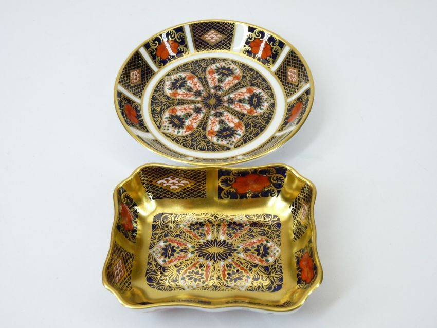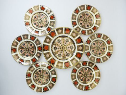 ROYAL CROWN DERBY 1128 PATTERN CABINET PORCELAIN, 19 PIECES - to include a 21.5cms side plate, 16cms side plates (6), cups (4), saucers (4), one coffee can and saucer and two pin dishes