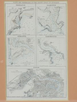 FRAMED ANTIQUE MAPS & PRINTS to include ARCHIBALD FULLARTON 'Ports & Harbours of the South Coast of England', 24 x 15cms, MOULE 'Worcestershire', hand tinted, 26 x 20cms, J CARY 'North Part of West Riding, Yorkshire', 1787, 24 x 29cms and 'South Part of West Riding', 1787, 22.5 x 28cms, T KITCHIN 'Staffordshire', 23 x 17.5cms, unattributed 'New & Accurate Map of Glamorganshire', drawn from Elite survey, 19.5 x 24cms along with two early engravings 'Flint Castle', 1775 and 'Hawarden Castle, Flintshire', 1773, 14 x 18.5cms and 12 x 18.5cms respectively