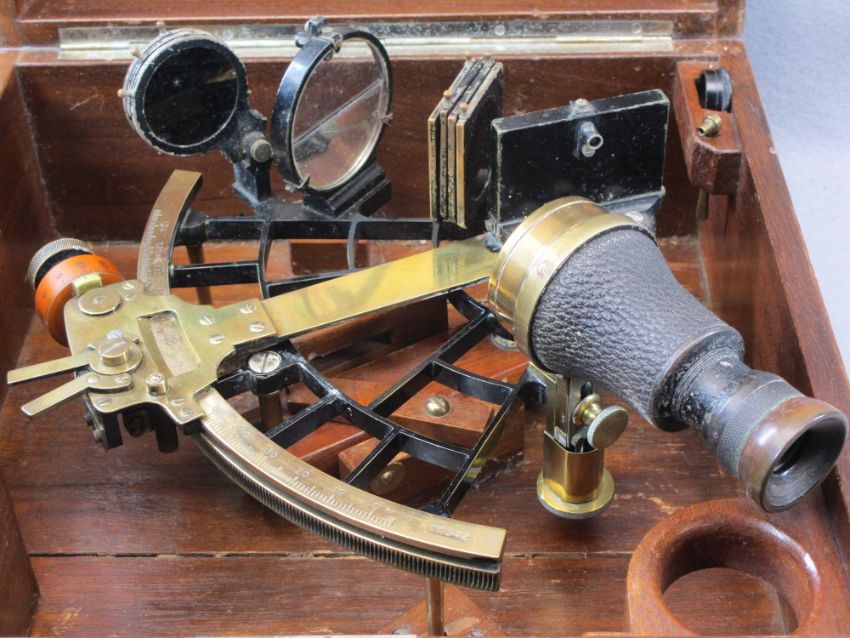 C PLATH HAMBURG SEXTANT IN WOODEN CARRYCASE