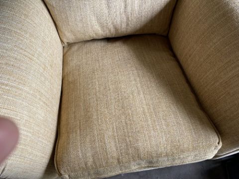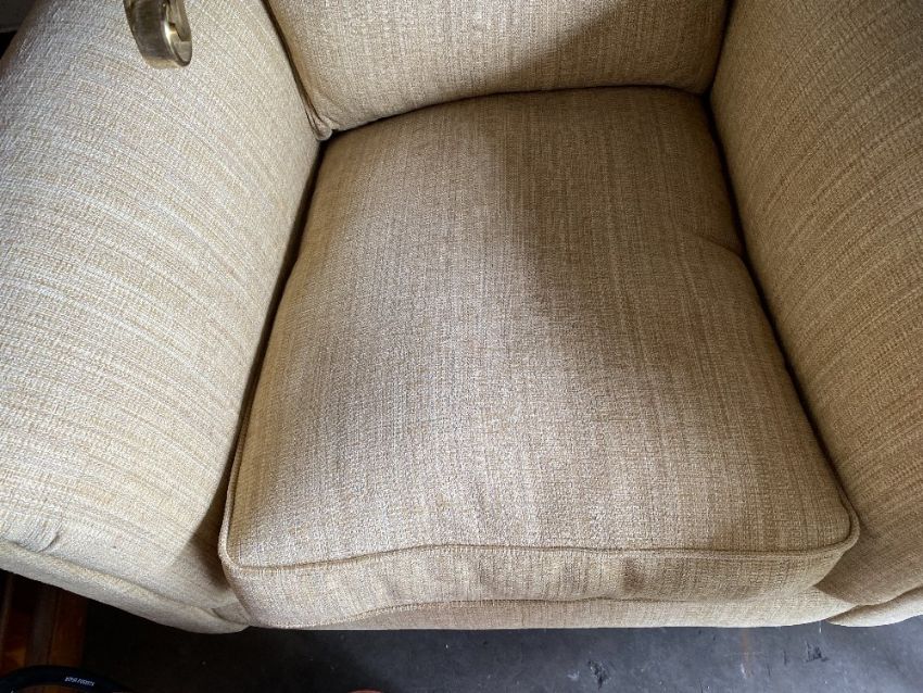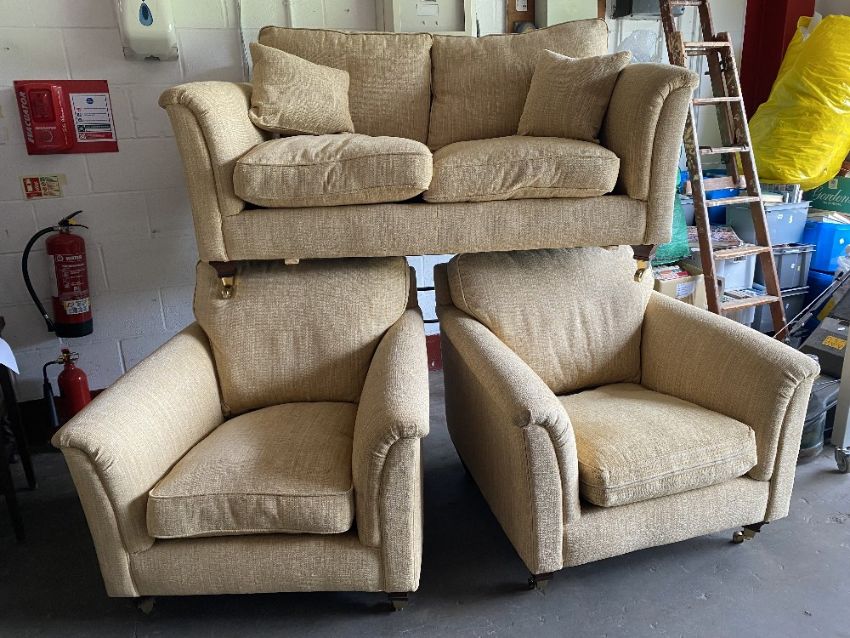 THREE PIECE SUITE - Marks & Spencer, tweed effect, sand coloured, comprising two seater settee, 95cms H, 175cms W, 105cms D and two armchairs, 95cms H, 100cms W, 105cms D (excellent example)