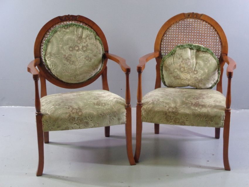 ORNATE ELBOW CHAIRS - a pair, walnut with cane backs