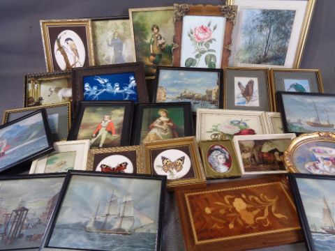 MARITIME RELATED PRINTS, set of five, neatly framed, 14.5 x 19.5cms AND a large quantity of other similar size paintings/prints including still life, portraits, ornithological ETC