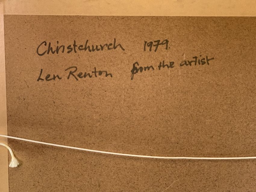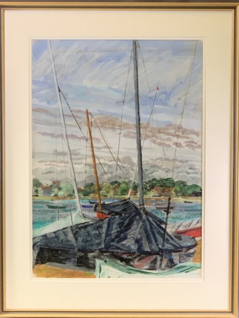 LEONARD RENTON watercolour/mixed media - riverscape with yachting masts etc, initialled and entitled verso 'Christchurch, 1979', 39 x 55cms