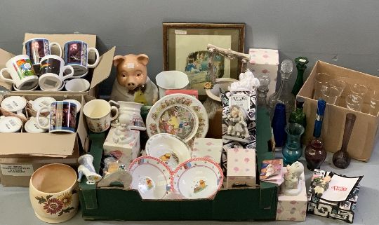 H J WOOD PIG COOKIE JAR, Harry Potter boxed movie mugs, 'Growing Grace' boxed models and a large assortment of other glass, novelty china ETC