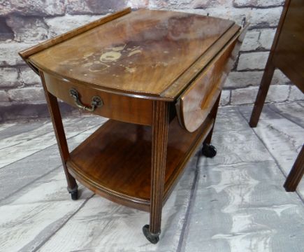 ASSORTED OCCASIONAL FURNITURE, comprising dressing table with four drawers (mirror back missing), mahogany music cabinet, mahogany drinks trolley with drop flap sides and end drawer and occasional table (4)
