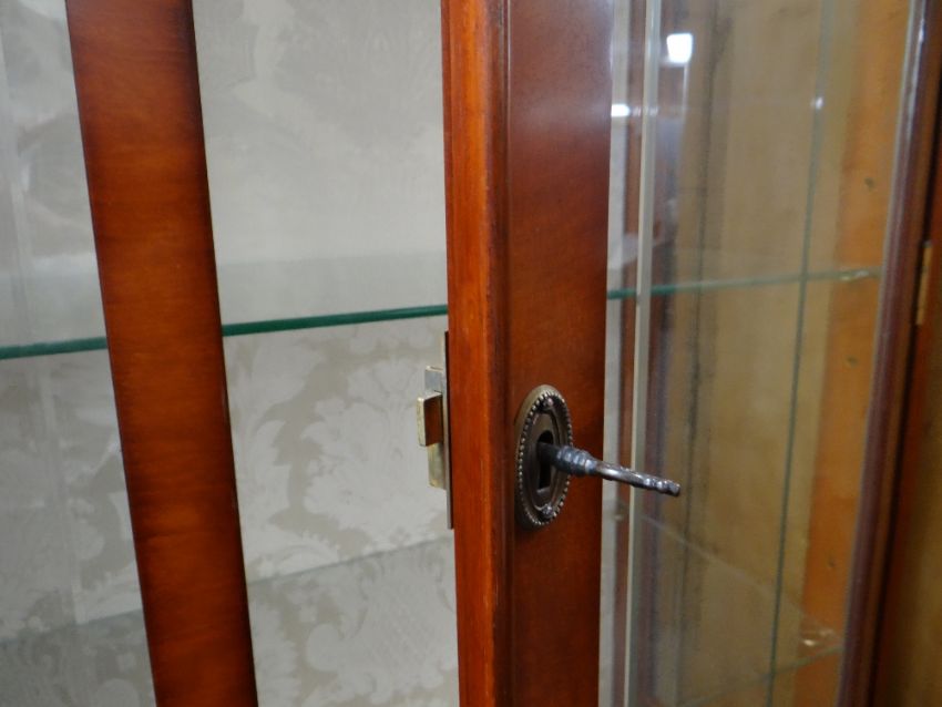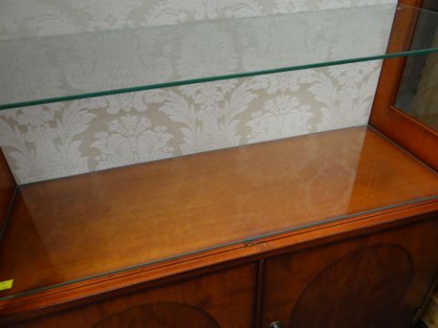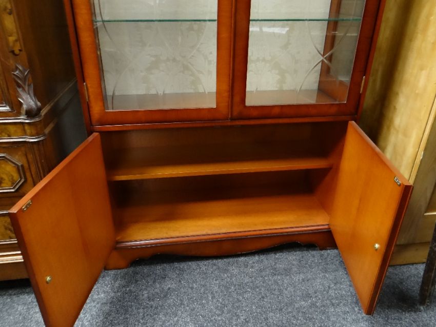 MODERN DISPLAY CABINET, with oval panelled doors below, glass shelves, 96 x 38 x 187cms