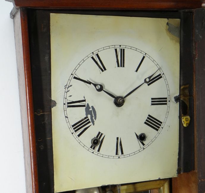 Condition Report: cornice replaced, painted dial with chips and loose, scuffs and abrasions.