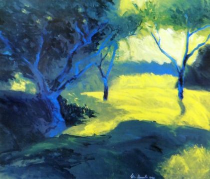 PETE DANIELS (b.1937) limited edition (48/500) colour print - 'Trees at Nine Wells 1990' signed, 22 x 26cms, framed and glazed