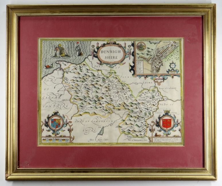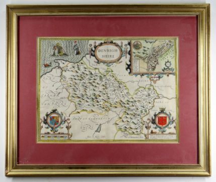 JOHN SPEED coloured antique map of Denbigh Shire (Sudbury & Humble), 38 x 51cms, framed