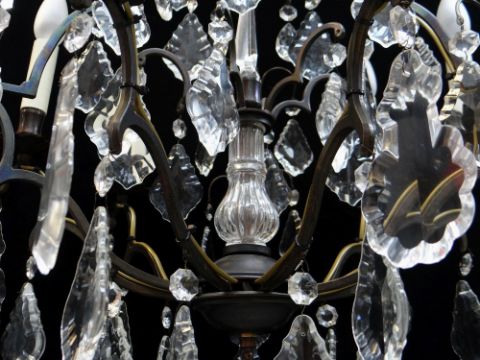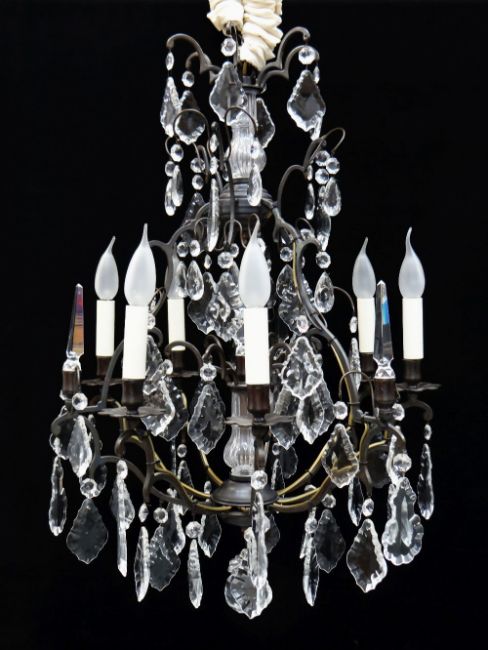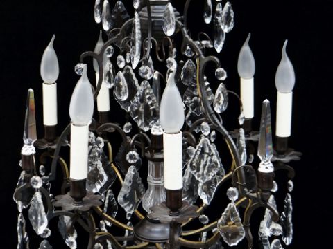 MODERN FRENCH-STYLE METAL & GLASS SIX-LIGHT CAGE CHANDELIER, 75h x 55cms diam.