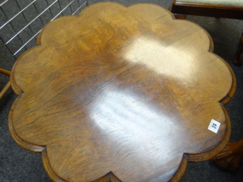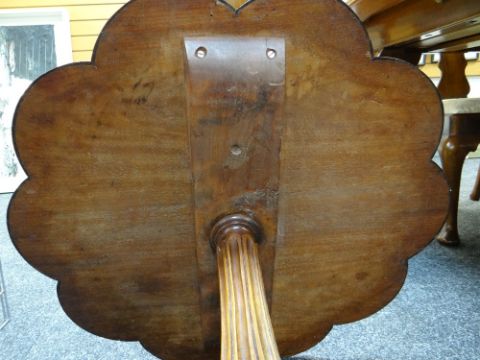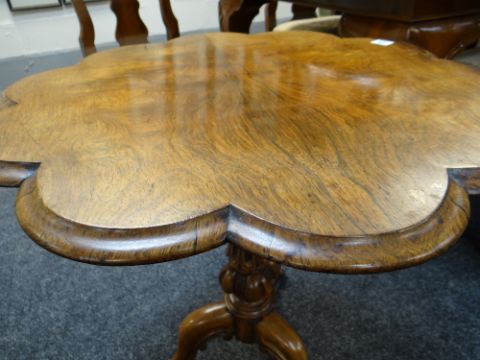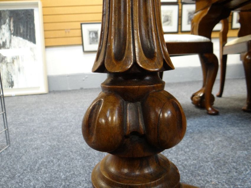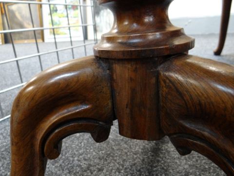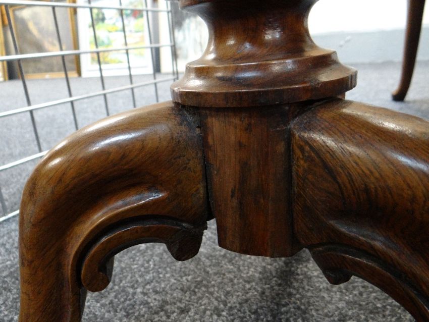 VICTORIAN ROSEWOOD TRIPOD TABLE, shaped top on fluted column and scrolled feet., 68cms diam approximately.