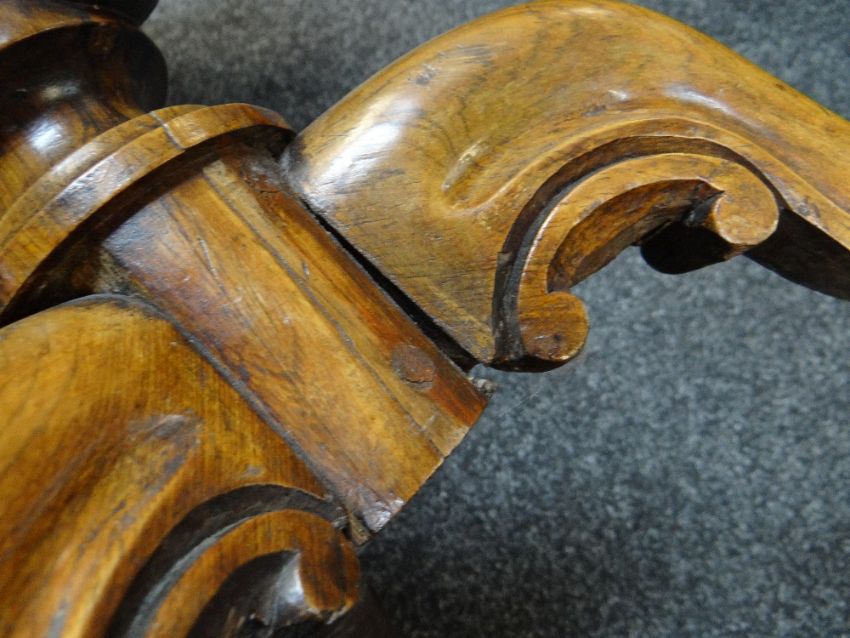 Condition: Two legs re-glued, cracks to moulded top.