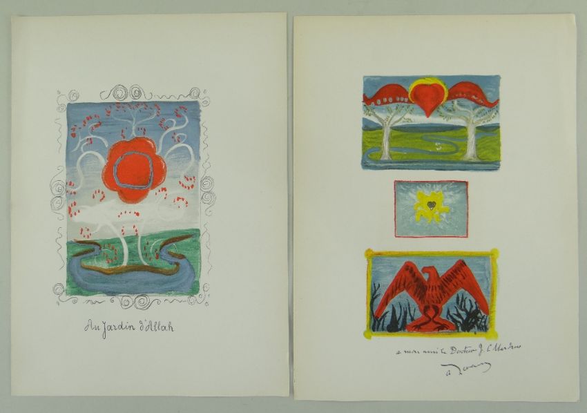 ANDRE DERAIN (French, 1880-1954 ) colour lithographs, c. 1939 - Au Jardin d'Allah, seven prints on two facing sheets, published in Paris for Verve, and printed by Mourlot Freres. Paris, sheets 34.7 x 25.2cms, (I) 20 x 14cms or smaller (2 sheets)