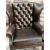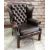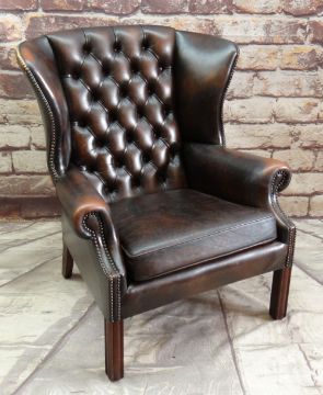 A MODERN REPRODUCTION GEORGIAN-STYLE WING-BACK LEATHER ARMCHAIR, brown button upholstered and close nailed upholstered back and arms, on moulded legs, loose seat cushion, 84cms wide