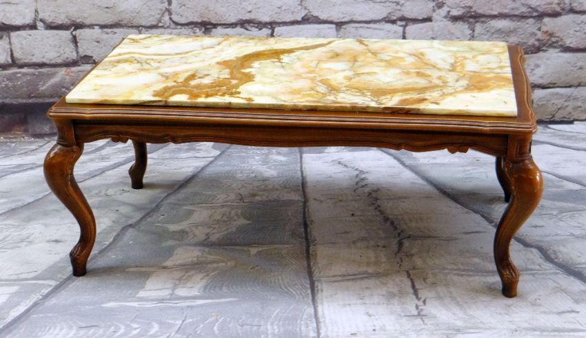 MODERN ONYX TOP LONG JOHN COFFEE TABLE & 5-TIER WHATNOT (2)