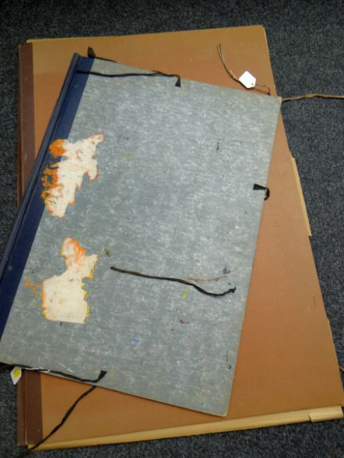 TWO ARTISTS FOLDERS & CONTENTS comprising a variety of works including anti-nuclear and exhibition posters, pencil portrait studies, assorted prints - names to include Joan Tucker, Peter Woodcock, Monica Sjöö, Aubrey Beardsley, Philip Sutton ETC (2)
