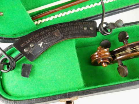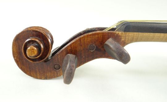EARLY 20TH GERMAN CENTURY VIOLIN, bearing label inside inscribed 'SIMONAZZI AMEDEO IN S. VITTORIA FECE ANNO 1929', LOB 14ins (35.8cms), and a bow, 74cms longCondition: saddle cracked to left of tailpiece, corner purfling lifting from waist, sound post loose, bow tip chipped and screw cracked and missing end.