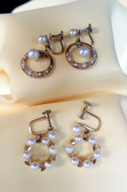 GOLD EARRINGS comprising two pairs of 10k gold pearl set earrings, 6.1gms overall