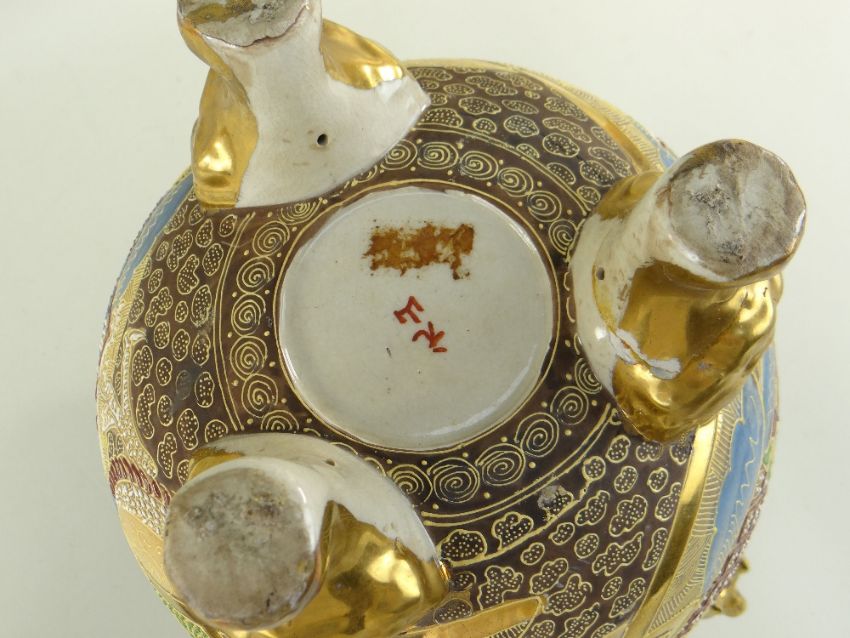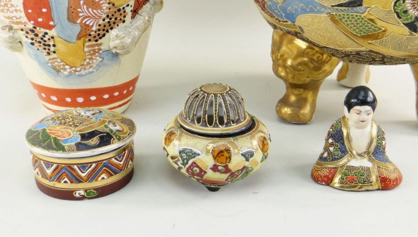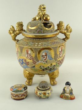 LARGE JAPANESE SATSUMA KORO & FOUR SIMILAR ITEMS, koro 39cm h. (5)